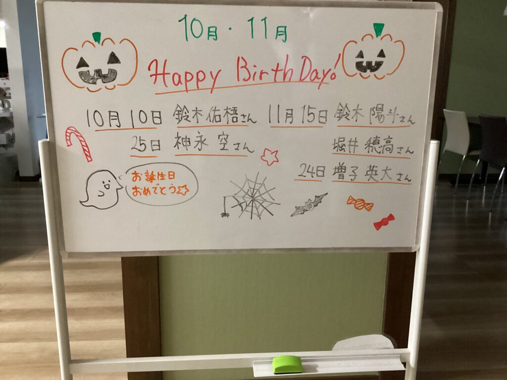 話は変わりまして!10月29日(水)に10月、11月の誕生日の利用者の誕生会と日付も近いのでハロウィン🎃を行いました🎉🎉🎉