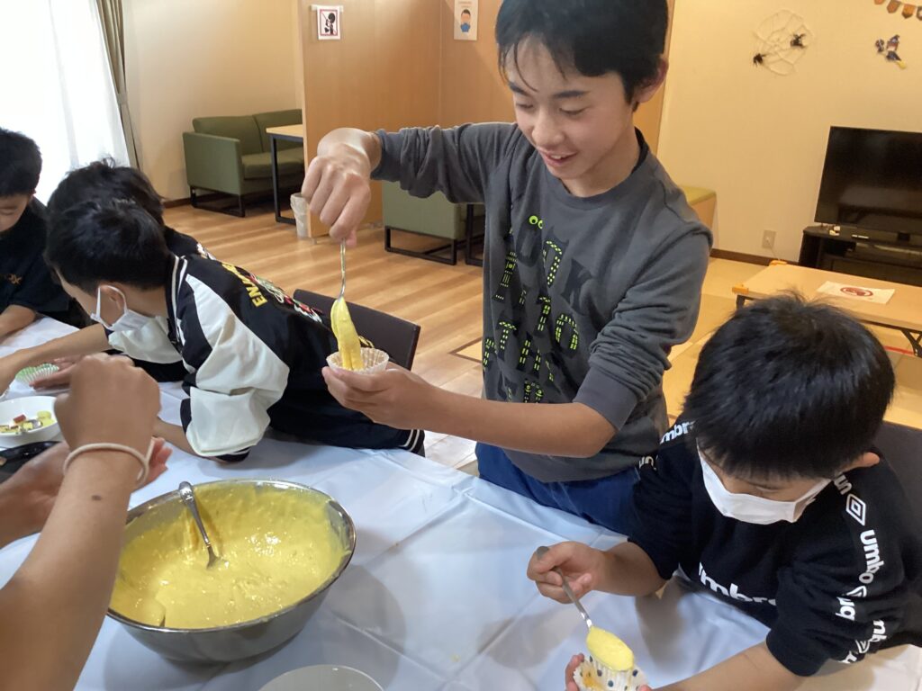 地元の方から寄附して頂いたカボチャとさつまいもを使って蒸しパン作りをしました🥞
