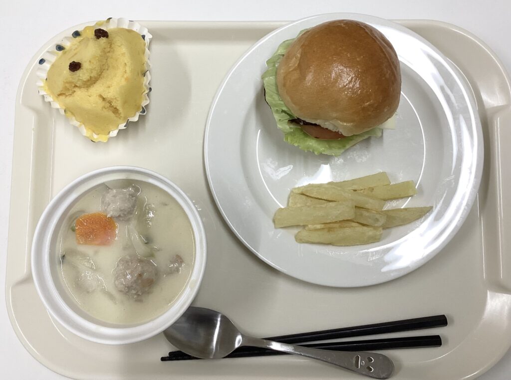 夕食は誕生日メニューで子ども達が好きなハンバーガー🍔やフライドポテト🍟、クリームシチューが提供されました😋✨